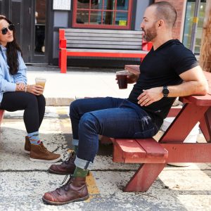 What could be more Vermont-y than cows and chocolate chip cookies? The Dairy Air Crew is part of our Knit to Give collection. which means 5% of all sales go directly to the Vermont Food bank to help fight food insecurity in our home state. Add in cushioned. super-soft Merino Wool. plus durability that’s guaranteed for life. and you get farm to sneaker style that feels as good as it looks.